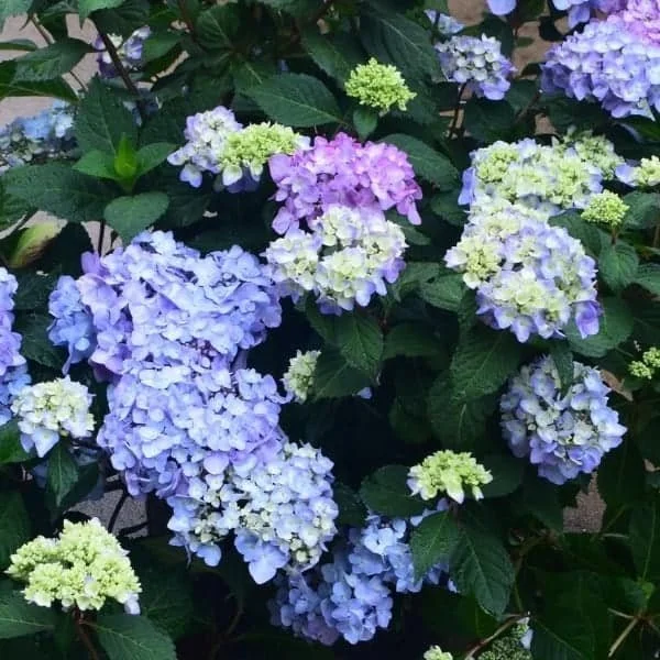Rock-n-Roll Hydrangea can potentially take the worry out of blue hydrangea planting. Selected by Dr. Michael Dirr, this hydrangea is a heavy blooming sport of Endless Summer® Twist-n-Shout®. It carries its bountiful blooms above sturdy stems and lush green foliage. The flowers are a mix of deep pink, purple, and blue and are re-blooming. It is exceedingly hardy and blooms profusely on old and new wood, providing a full season of color from June to October.