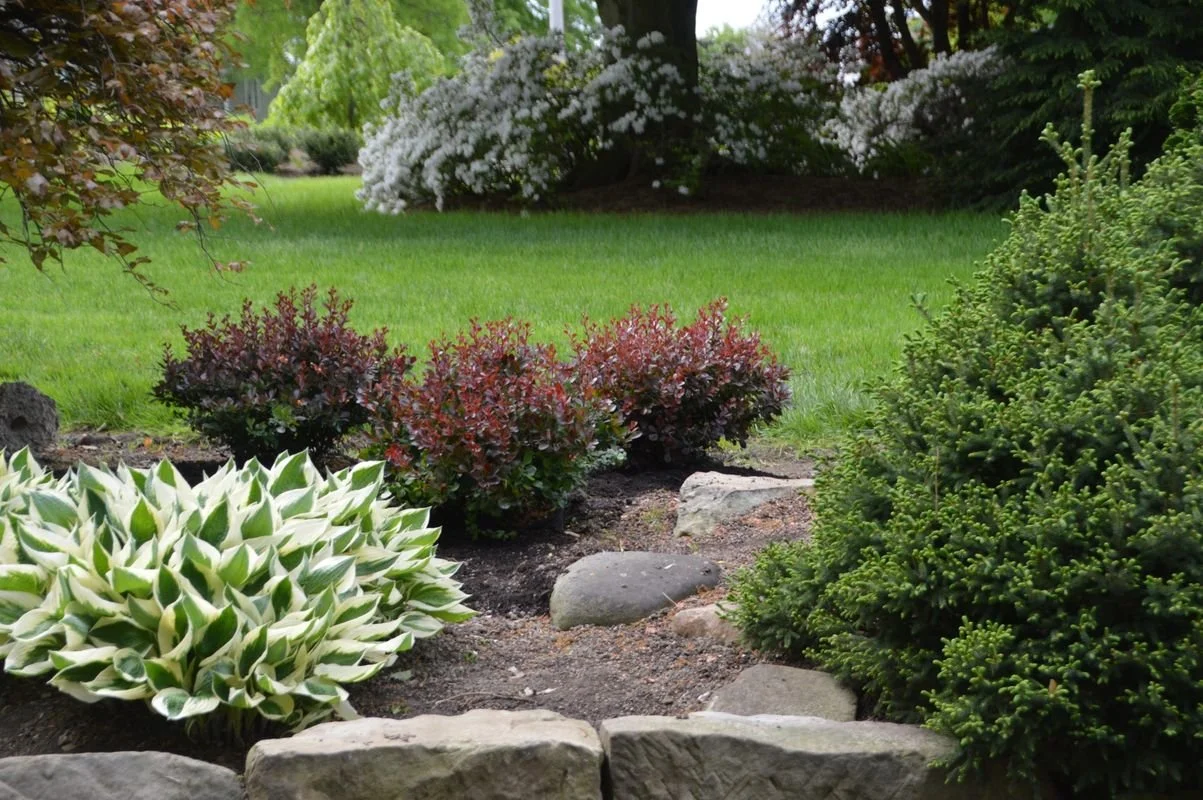So we limped along, using burgundy-leafed Heuchera varieties or dwarf burgundy-leafed forms of Weigela or maybe burgundy-leafed cultivars of sedum as substitutes, realizing that they didn't really serve the same function in the design as crimson barberry had.